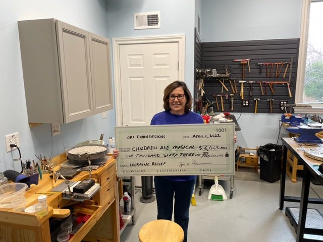 In 2022 Jill raised over $6,000 for children in the Ukraine from the sale of her jewelry during a single art show in Indiana.